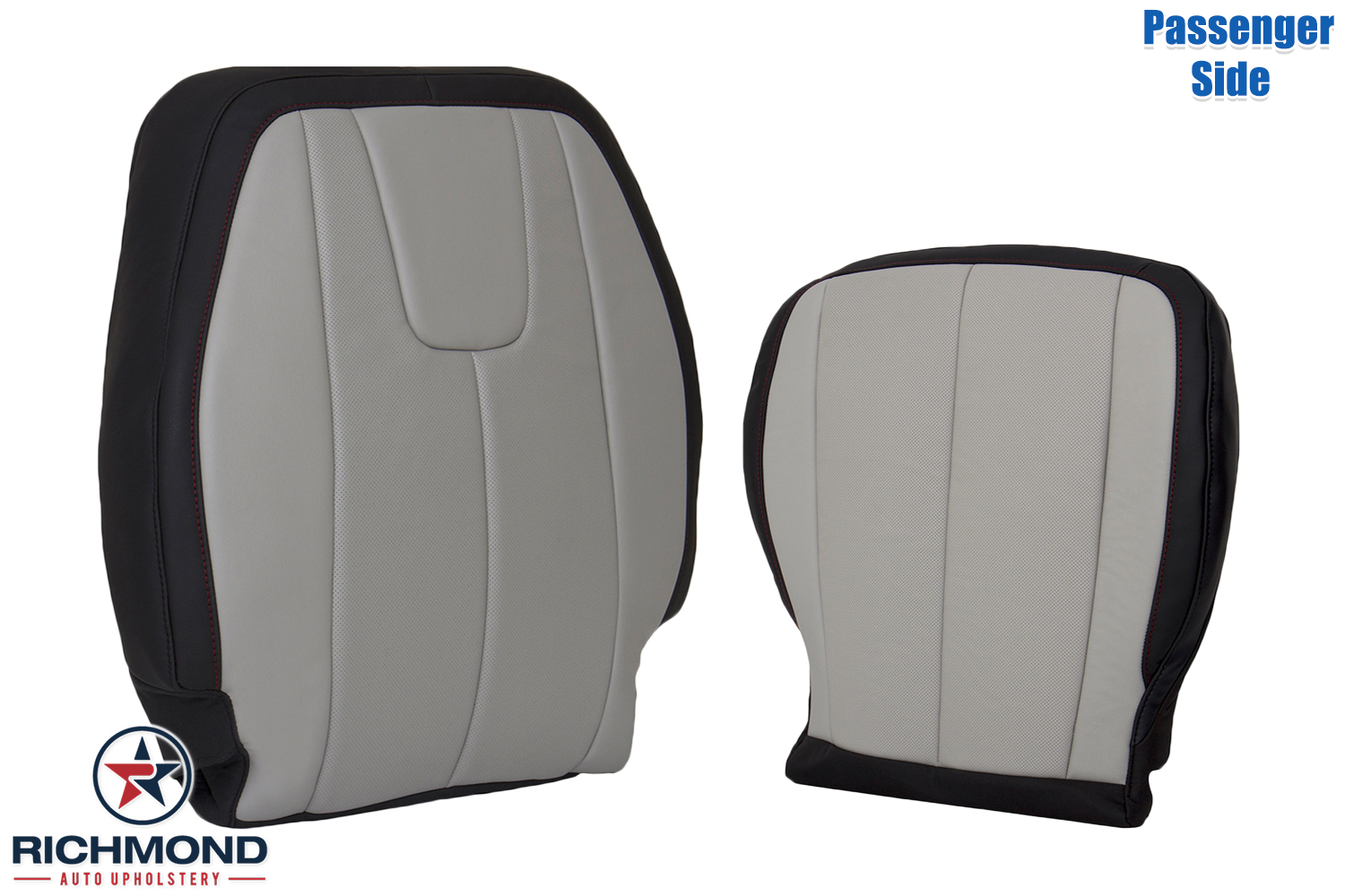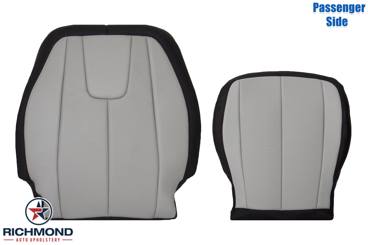2017 Chevy Equinox Premier Replacement Leather Seat Covers: Passenger Side Complete, 2-Tone Black & Gray Perforated