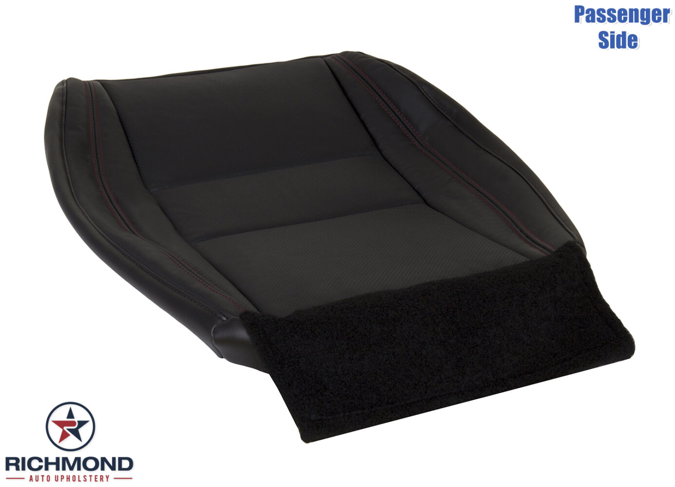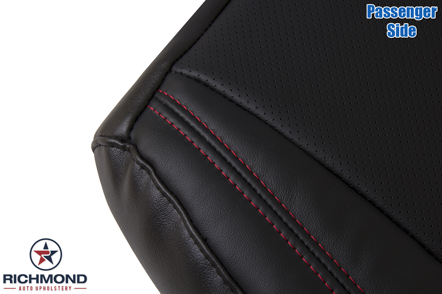 2014-2020 Dodge Durango Replacement Leather Seat Cover: Passenger Side Bottom, Black Perforated with Red Double Stitch