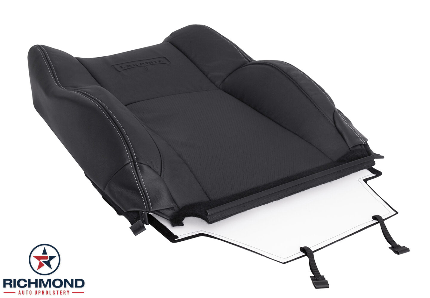 2013-2018 Dodge Ram 1500 Laramie Replacement Leather Seat Cover: Passenger Side Lean Back, Black Perforated