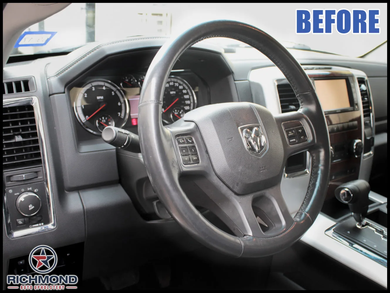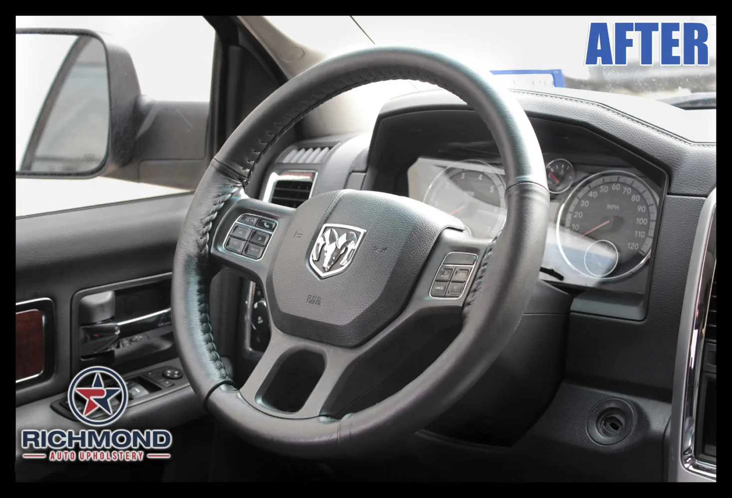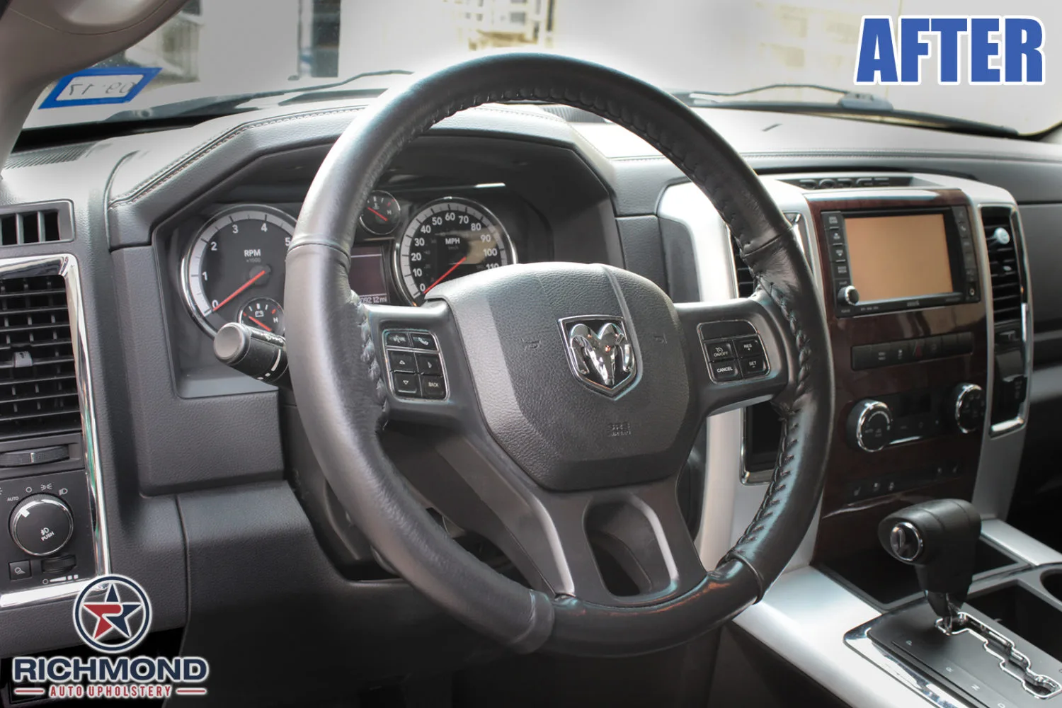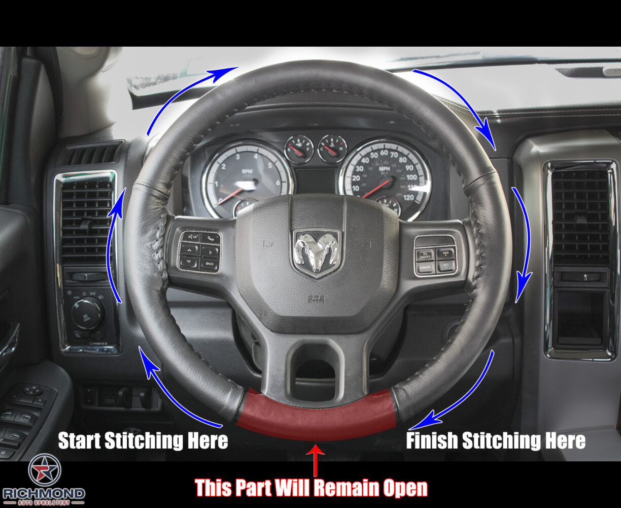 Brand New Genuine Leather Steering Wheel Cover for your 2013-2018 Dodge Ram 2500 Truck!