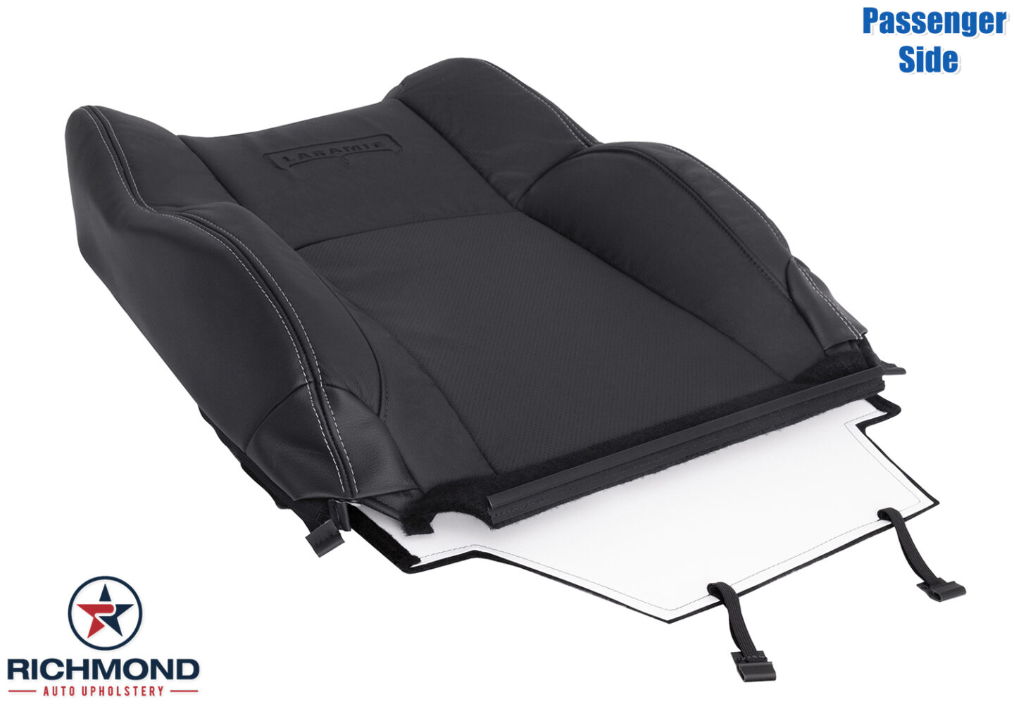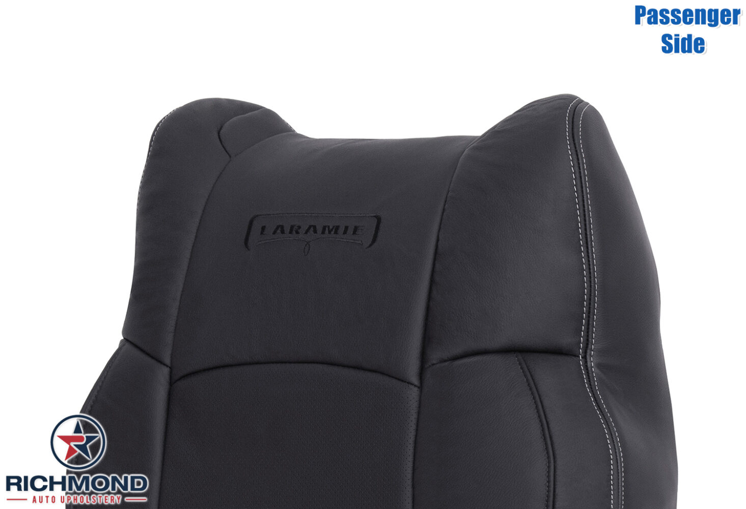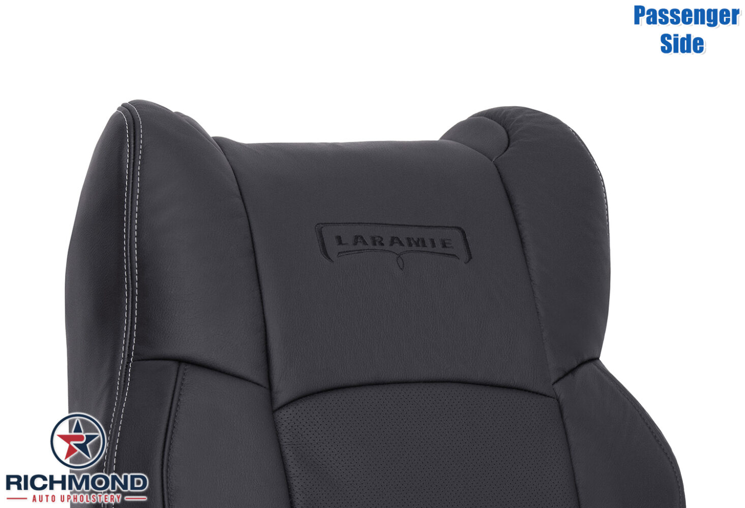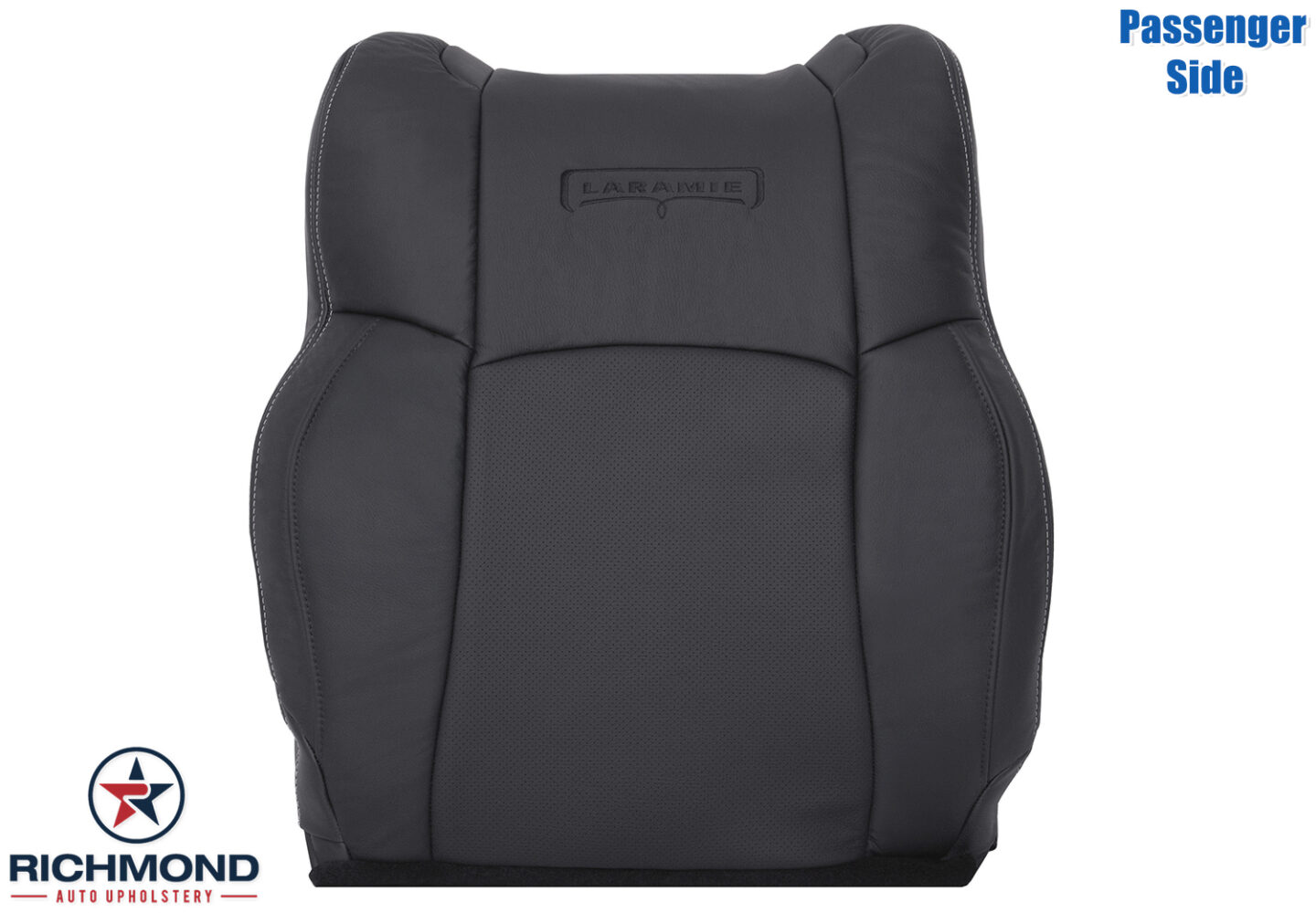 2013-2018 Dodge Ram 3500 Laramie Replacement Leather Seat Cover: Passenger Side Lean Back, Black Perforated