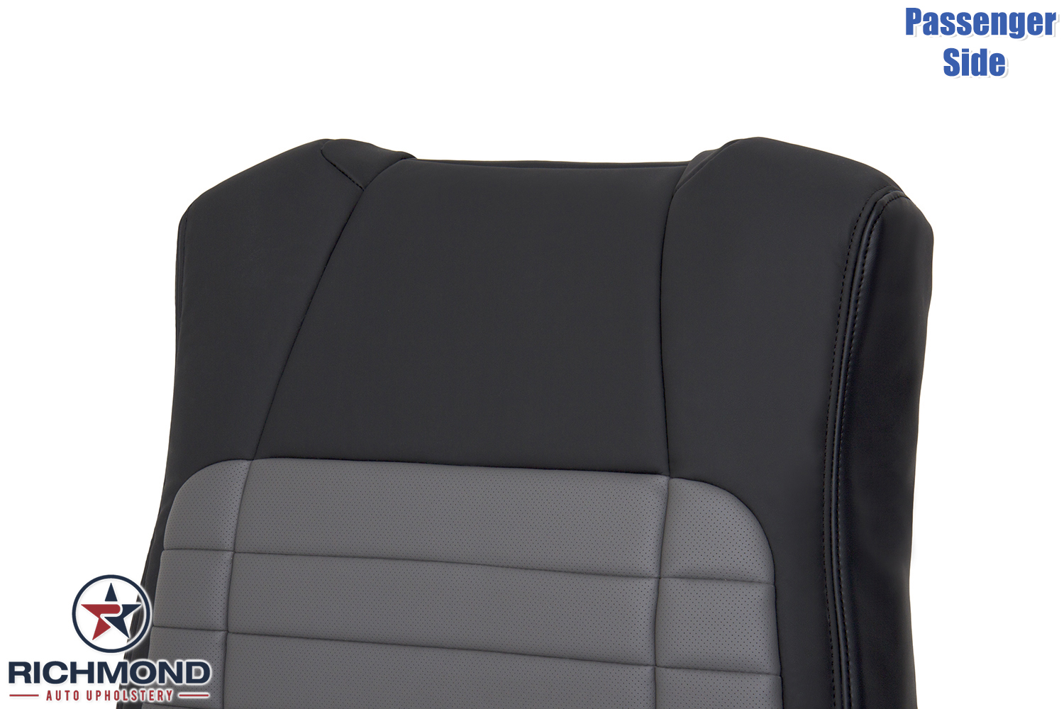 2002 Ford F-150 Harley-Davidson Replacement Leather Seat Cover: Passenger Side Lean Back, 2-Tone Black/Gray Perforated