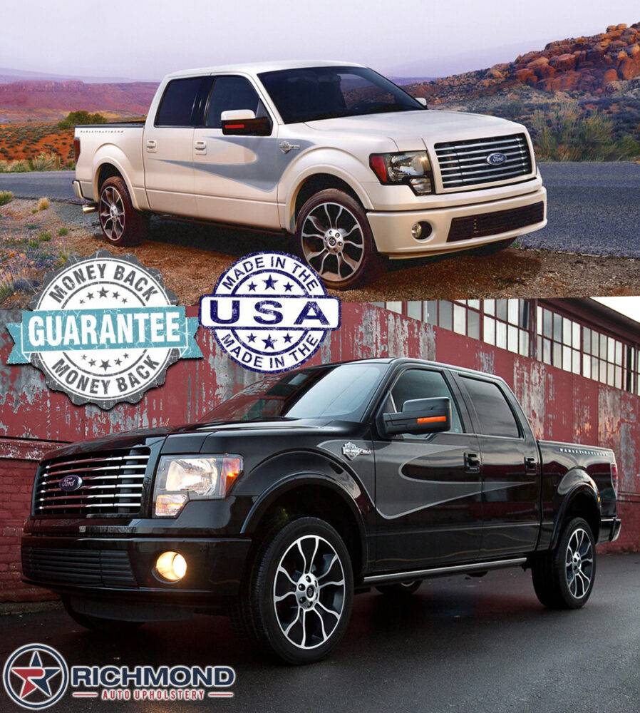 By cutting out the middle man we save you money! We manufacture all of our replacement leather covers and ship the product directly from our office in Houston, TX, leaving you with a OEM quality cover that is made in the USA without paying high dealership prices! Our replacement covers are manufactured to exceed OEM specs but maintaining an OEM look, we only use genuine factory original leather and materials. The factory cover that is in your Ford F-150 Harley-Davidson now came with vinyl bolsters that tend to crack and peel over time. We have engineered a replacement cover for durability. Unlike traditional vinyl and synthetic materials, we use Genuine Leather on the Bolsters to ensure a long-lasting quality cover, while the Ultra Leather perforated inserts provide the look and feel of real leather without ripping or holes connecting. You can also upgrade to Genuine Leather Perforation for an additional fee. Contact us for more details. All of our materials come in the original factory color, there is NO Painting or Dyeing involved so your cover will never peel or fade! Quality is mandatory which is why each cover is individually handmade and tested for fitment before it is packed and shipped, if you are not satisfied with your cover you have a 100% money back guarantee!! We have been supplying franchise dealerships with our Handmade Replacement Covers for over 42 years and we are now offering them to the public!