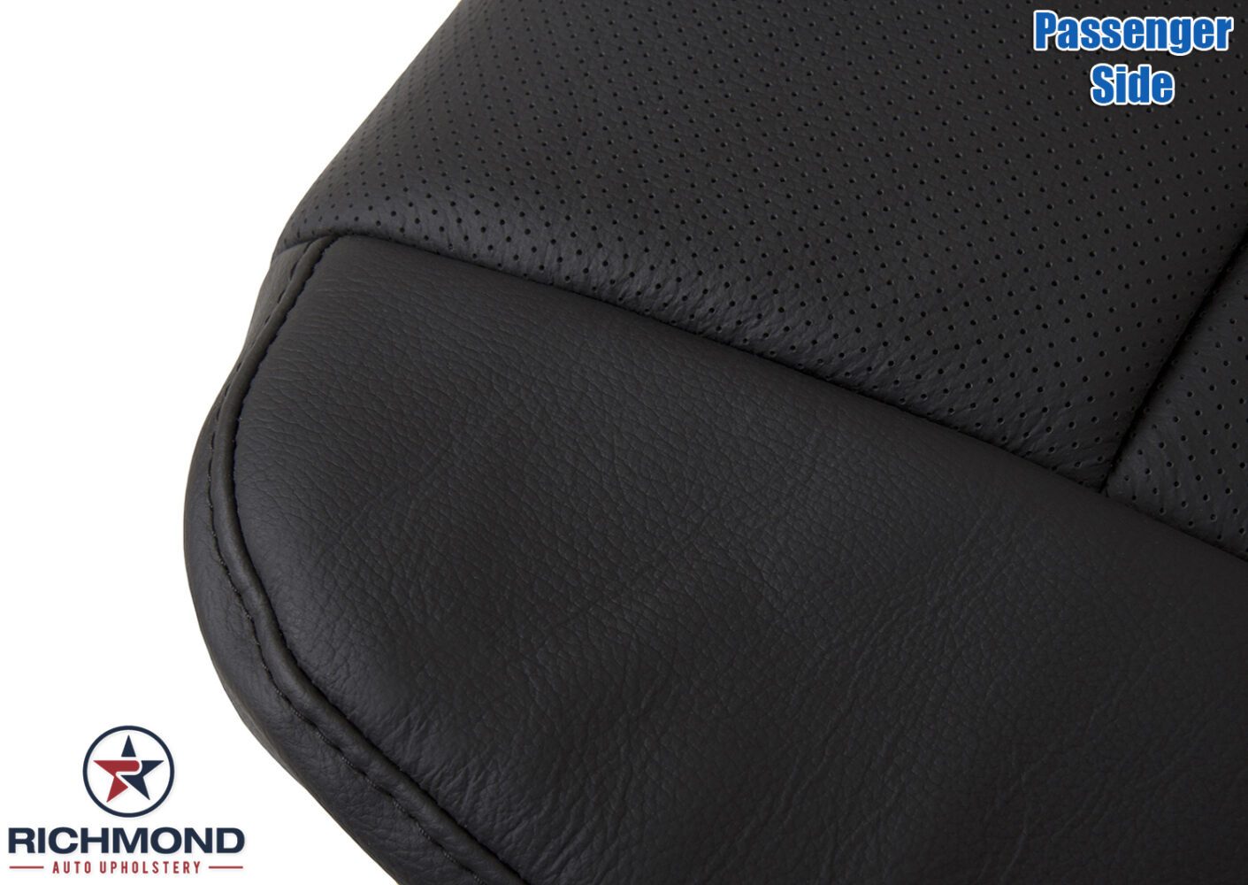 2012 Ford F-150 Harley-Davidson Replacement Leather Seat Cover: Passenger Side Bottom, Black with Synthetic Leather Perforation