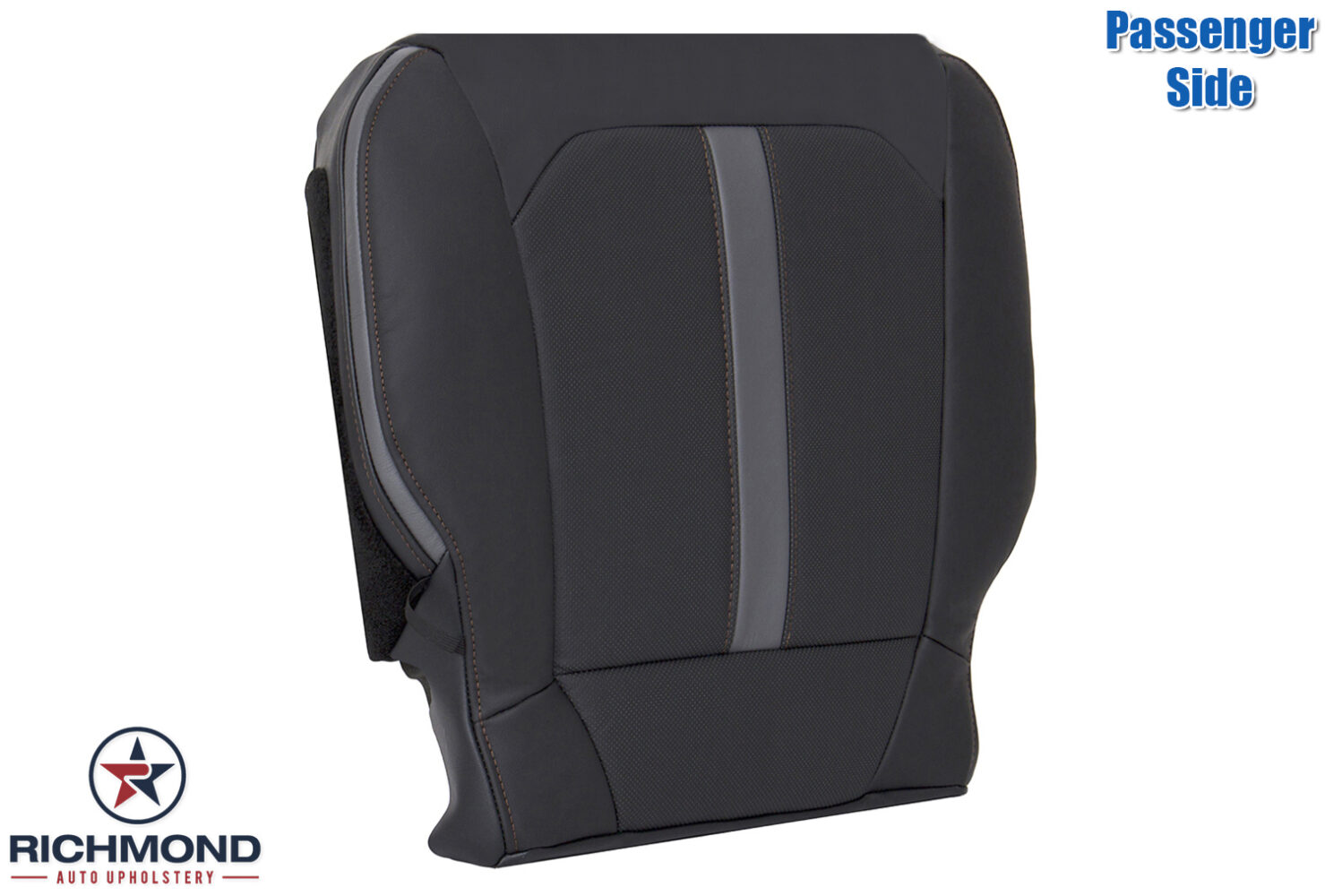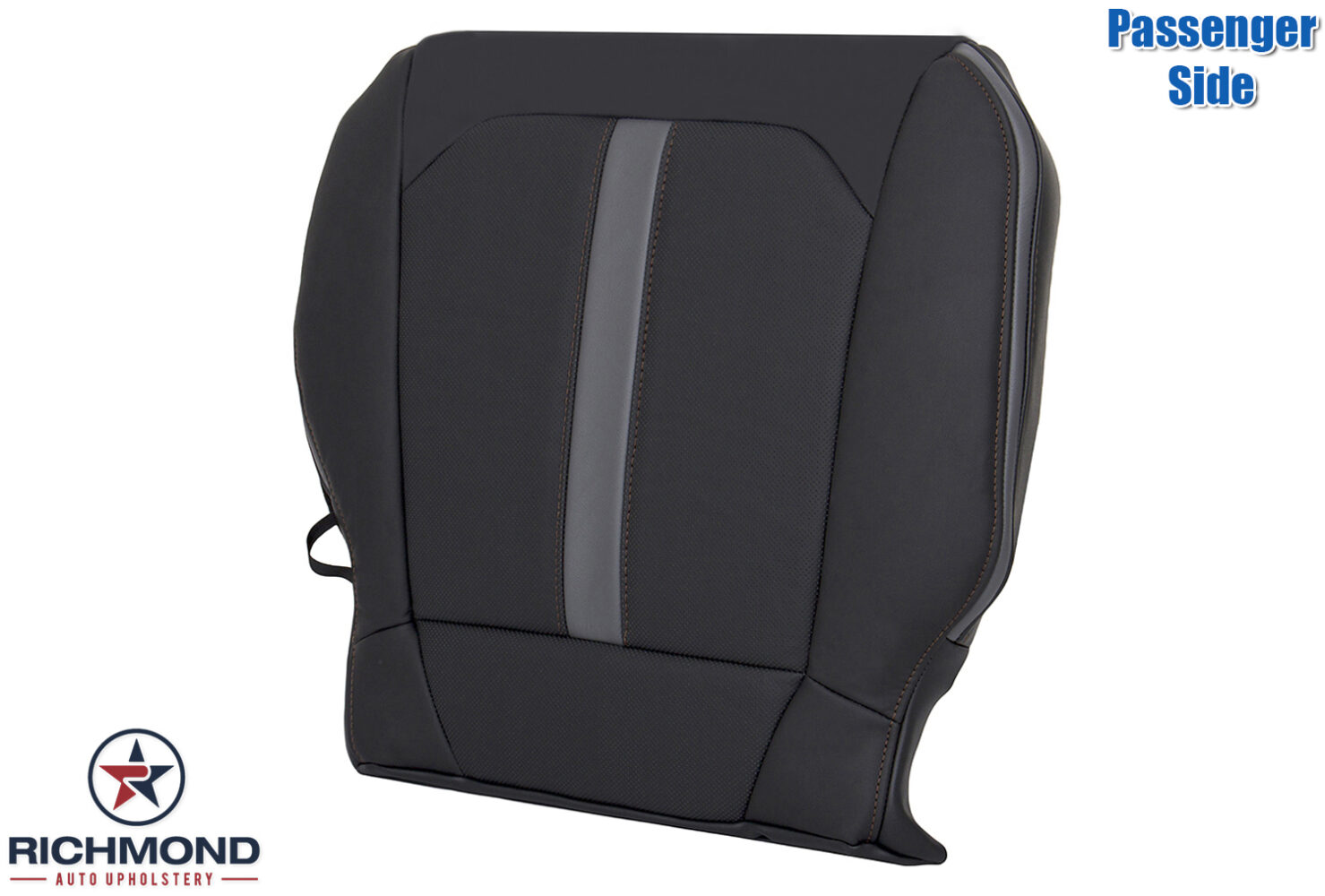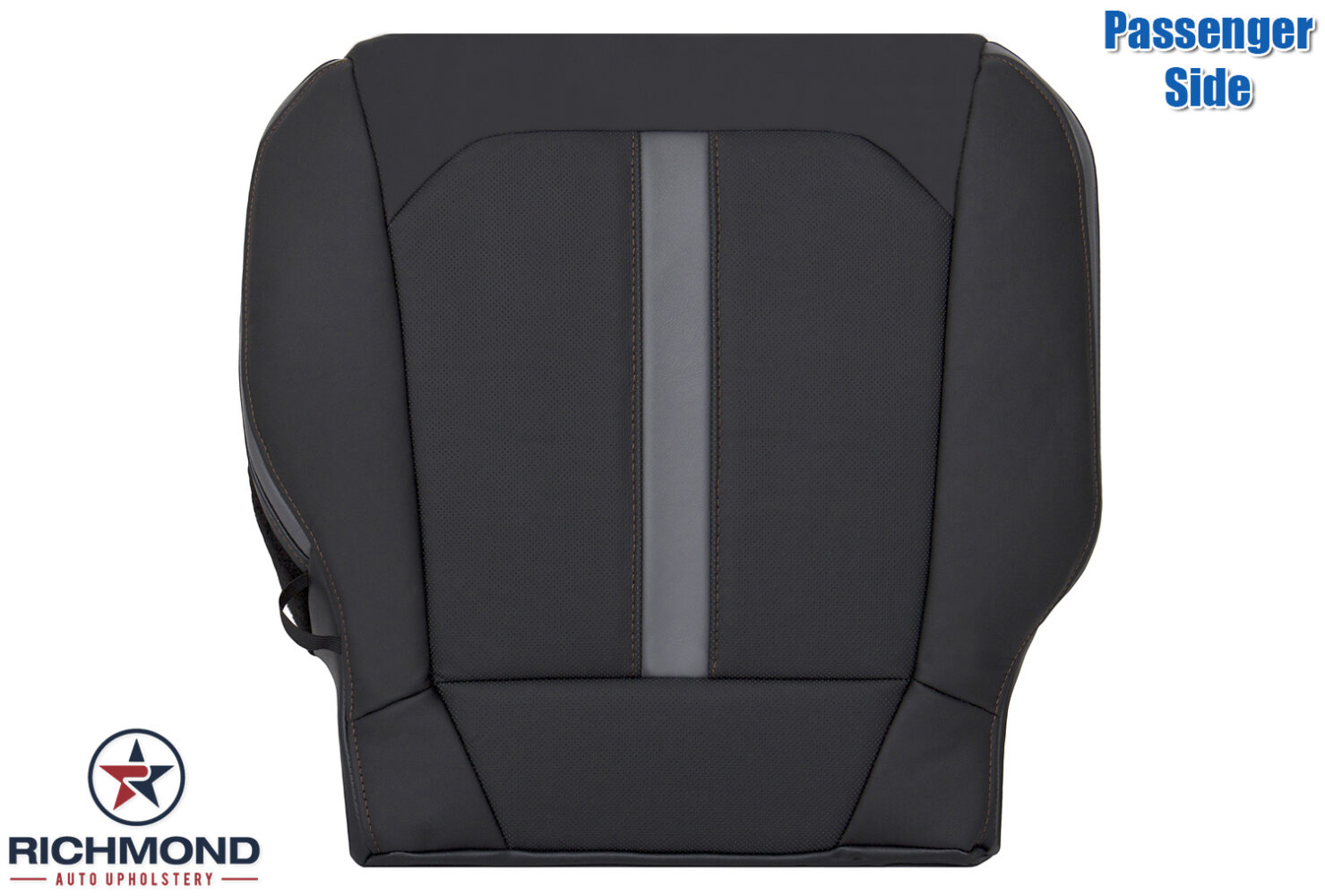 2019-2020 Ford F-150 Platinum Edition Replacement Leather Seat Cover: Passenger Side Bottom, Black with Dark Brown Stitching