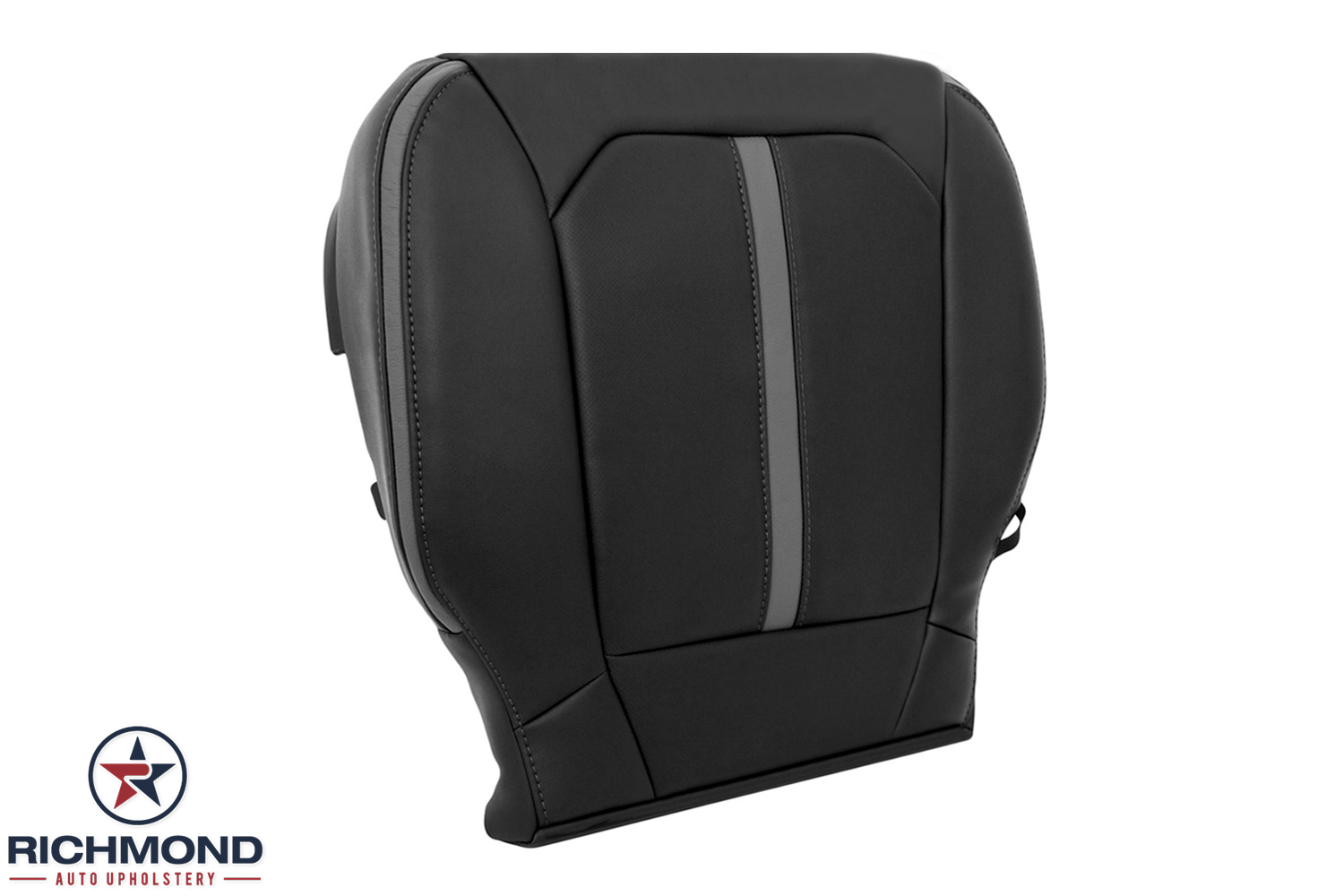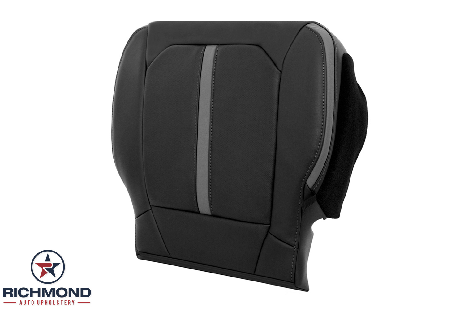 2019-2022 Ford F-250 Platinum Edition Replacement Leather Seat Cover: Passenger Side Lean Back, Black with Gray Stitching