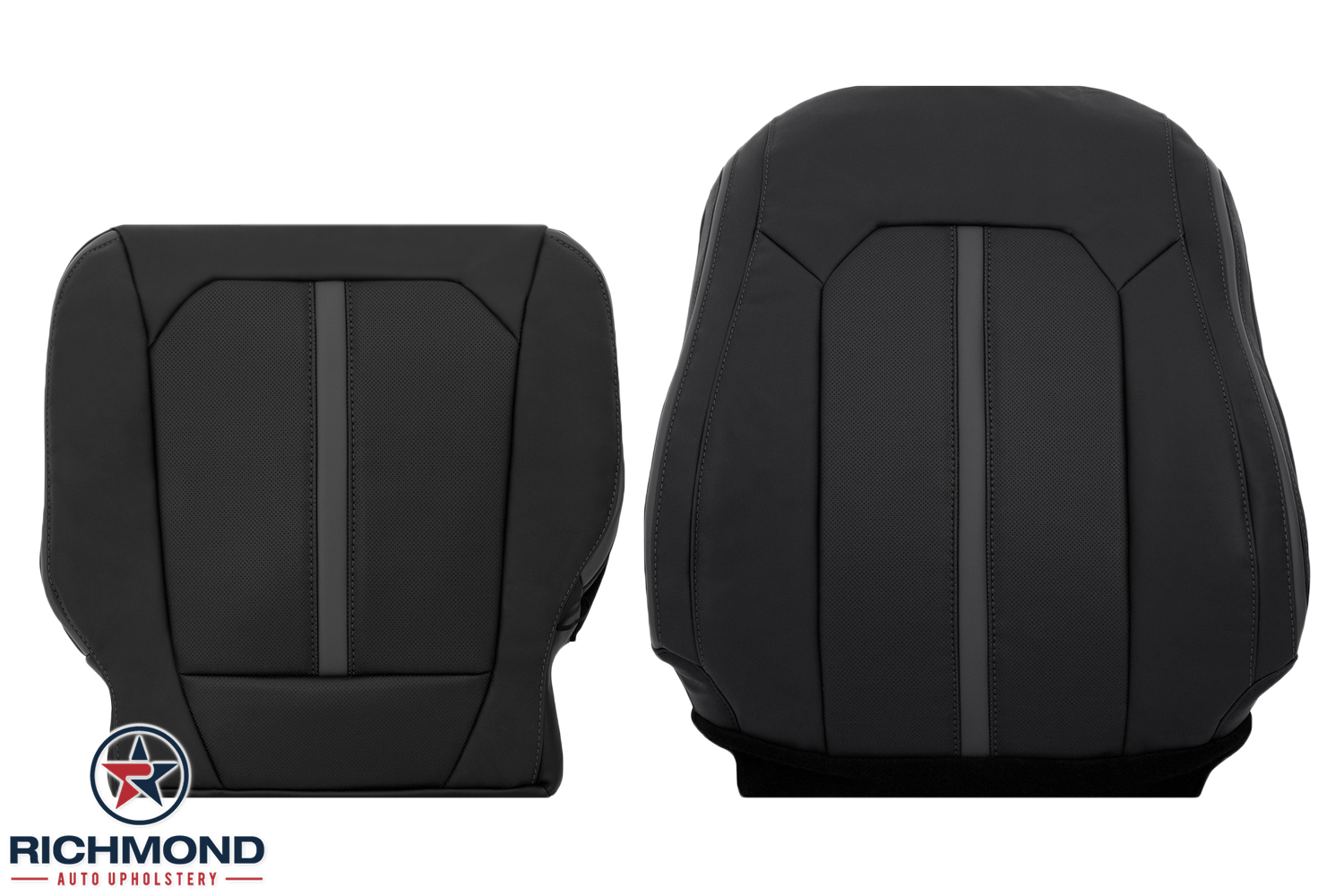 2019-2022 Ford F-250 Platinum Edition Replacement Leather Seat Covers: Driver & Passenger Complete, Black with Gray Stitching