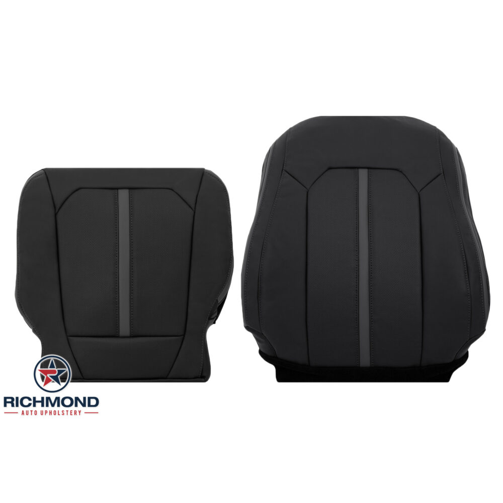 2019-2022 Ford F-250 Platinum Edition Replacement Leather Seat Cover: Driver Side Lean Back, Black with Gray Stitching
