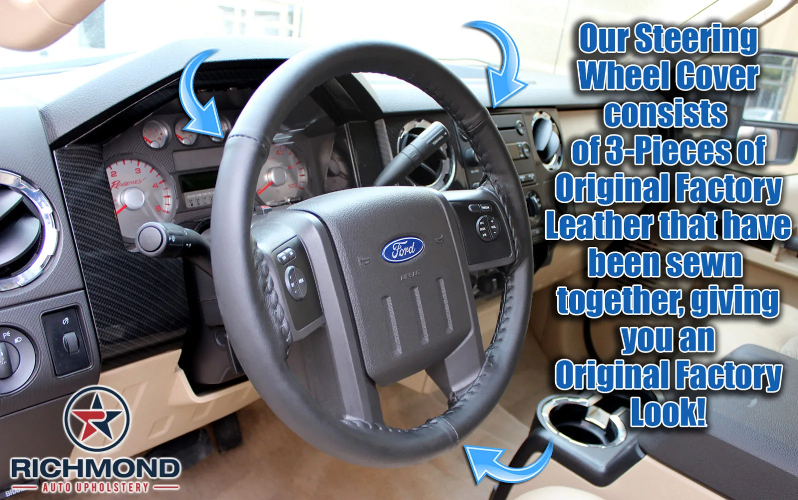 Brand New Genuine Leather Steering Wheel Cover for your 2008-2010 Ford F-250 F-350 Harley-Davidson Truck!!