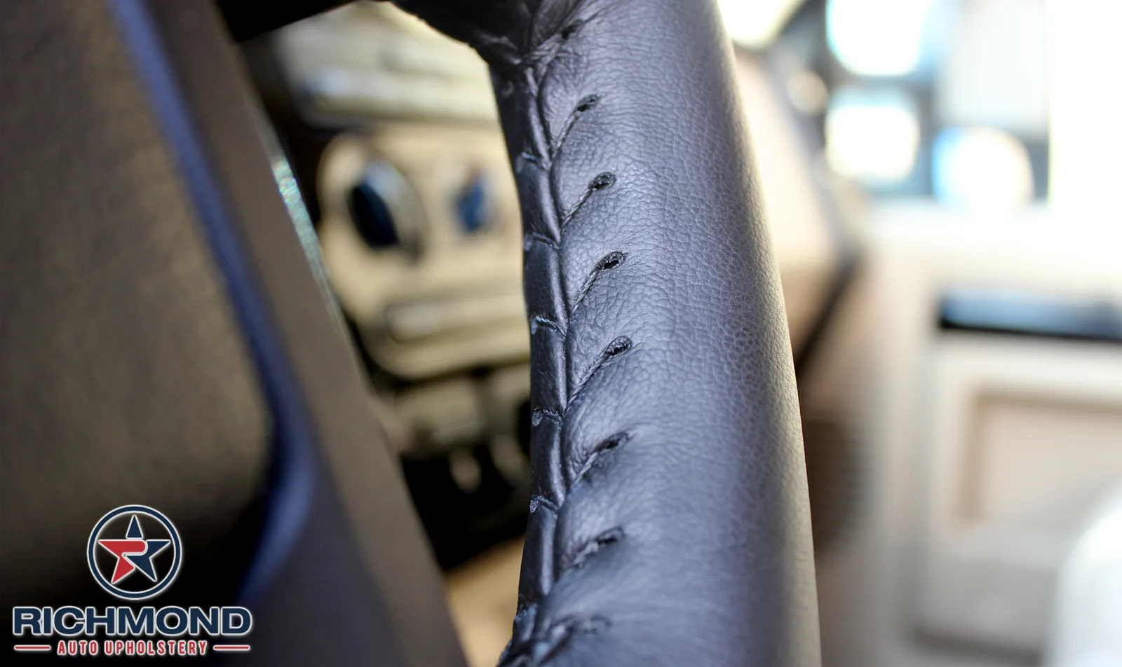 2008-2010 Ford F-350 Harley-Davidson: Leather Steering Wheel Cover, Black