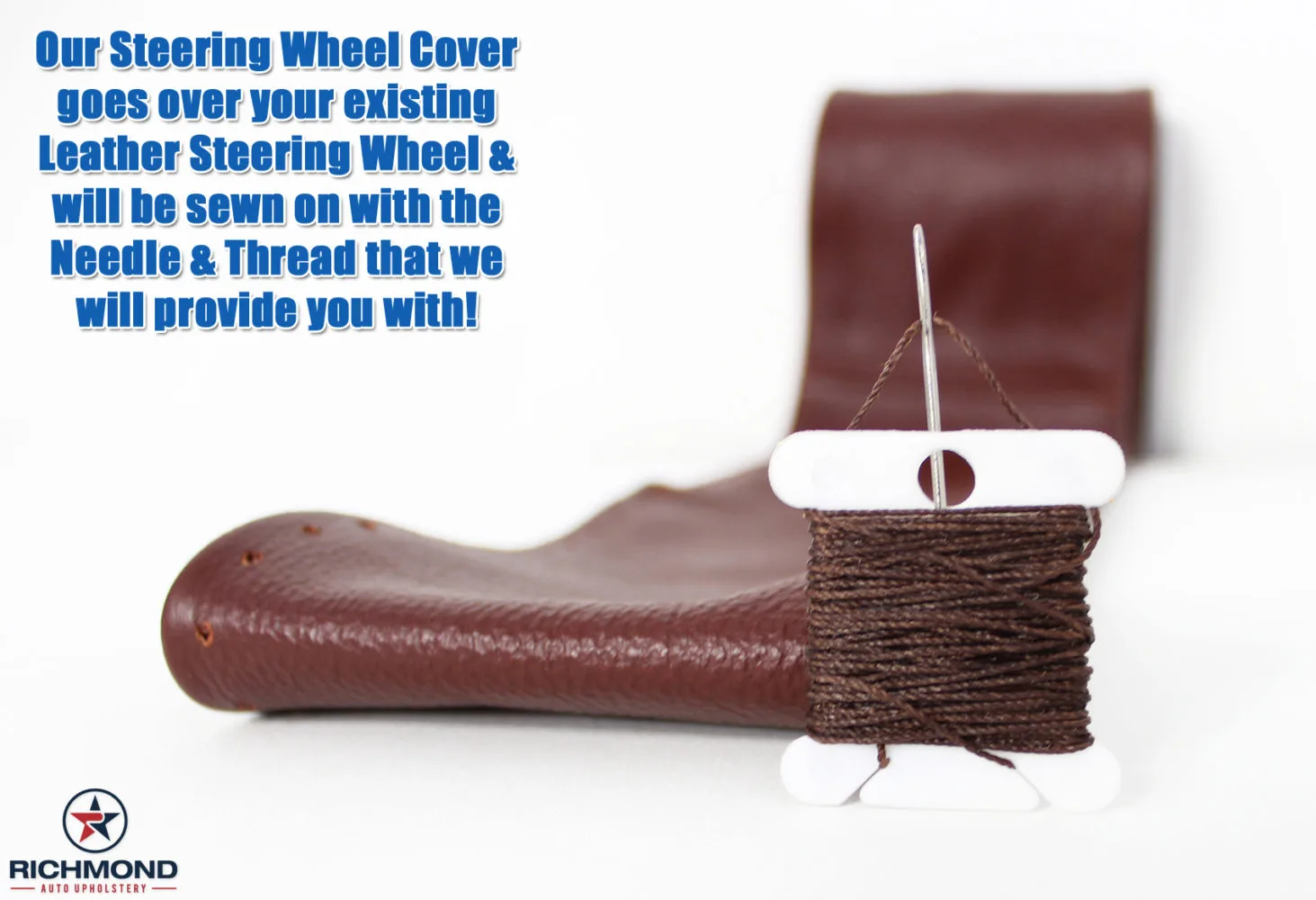 - Goes over your existing Leather Steering Wheel & will be sewn on with the Needle & Lacing Cord that we provide you with!!