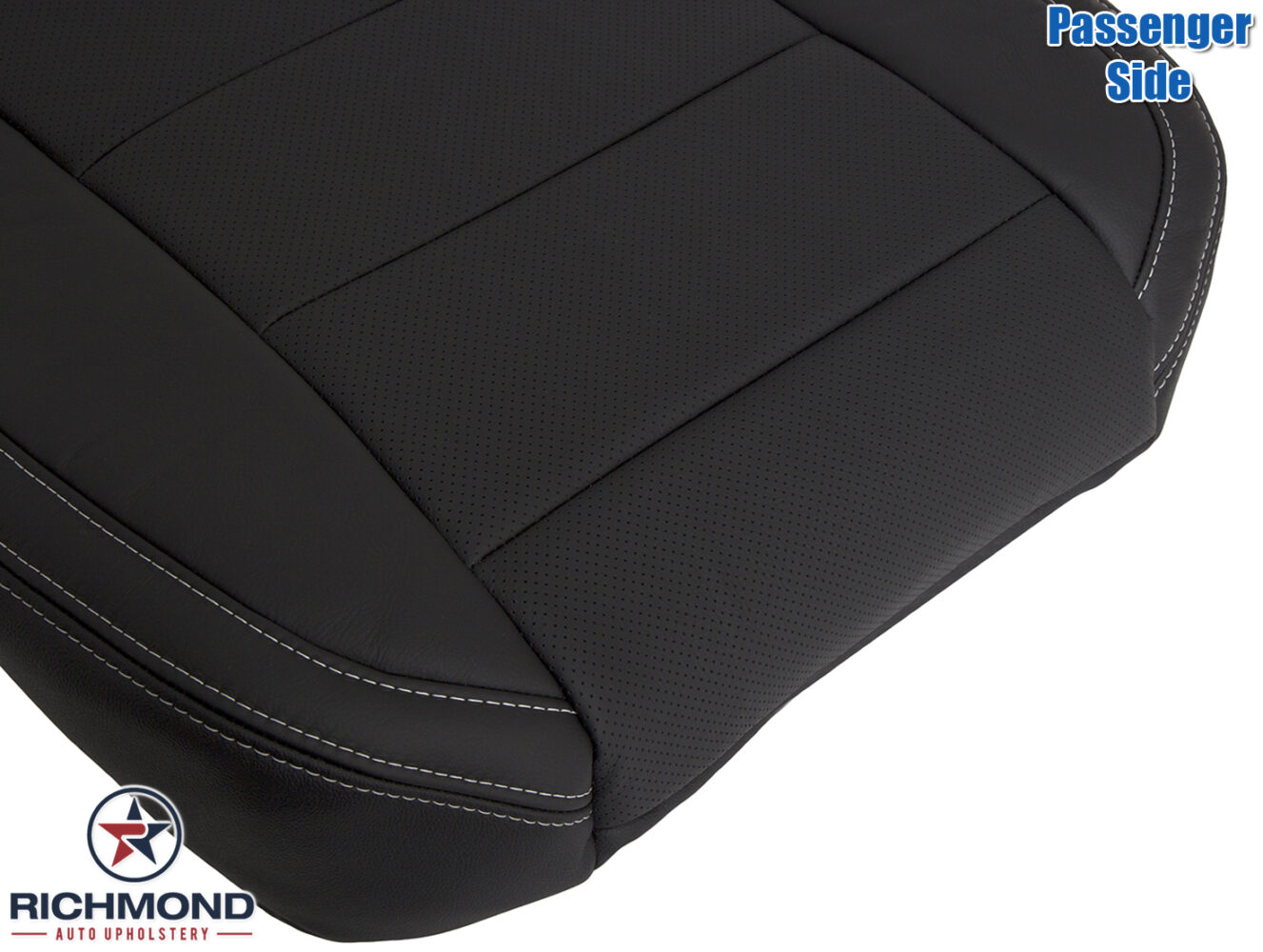 2015-2023 Ford Mustang V6 V8 Replacement Leather Seat Cover: Passenger Side Bottom, Black Perforated