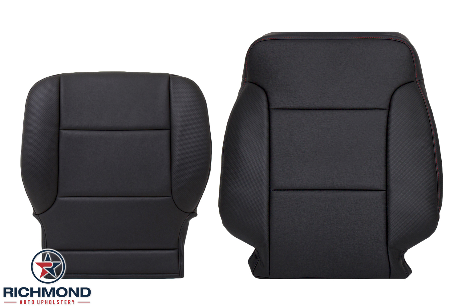 Material: The original factory OEM seat that your truck is equipped with is a full vinyl seat that tends to crack and peel over time. Our new replacement seat cover is manufactured with a Genuine Leather seating surface and factory re-make Carbon Fiber Sides, giving you the durability, comfort and exact match.