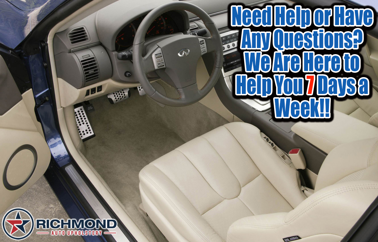 By cutting out the middle man we save you money! We manufacture all of our replacement leather covers and ship the product directly from our office in Houston, TX, leaving you with a OEM quality cover that is made in the USA without paying high dealership prices! Our replacement covers are manufactured to exceed OEM specs but maintaining an OEM look, we only use genuine factory original leather and materials. The factory cover that is in your Infiniti now came with vinyl bolsters that tend to crack and peel over time. We have engineered a replacement cover for durability. Unlike traditional vinyl and synthetic materials, we use Genuine Leather on the Bolsters to ensure a long-lasting quality cover. All of our materials come in the original factory color, there is NO Painting or Dyeing involved so your cover will never peel or fade! Quality is mandatory which is why each cover is individually handmade and tested for fitment before it is packed and shipped, if you are not satisfied with your cover you have a 100% money back guarantee!! We have been supplying franchise dealerships with our Handmade Replacement Covers for over 42 years and we are now offering them to the public!