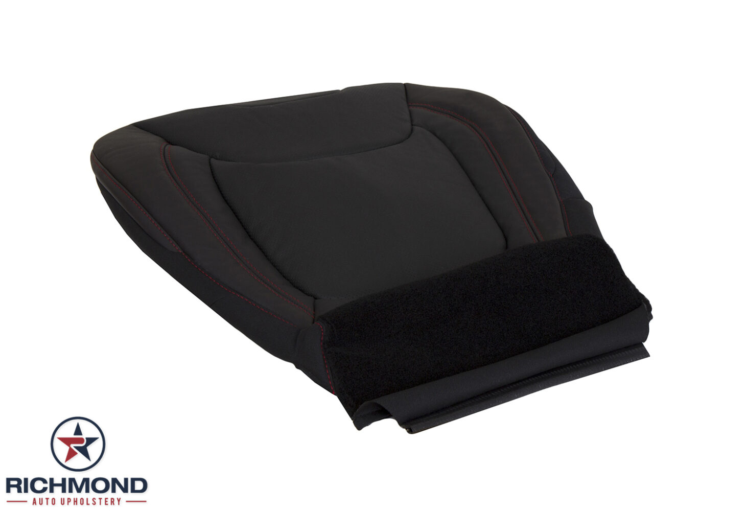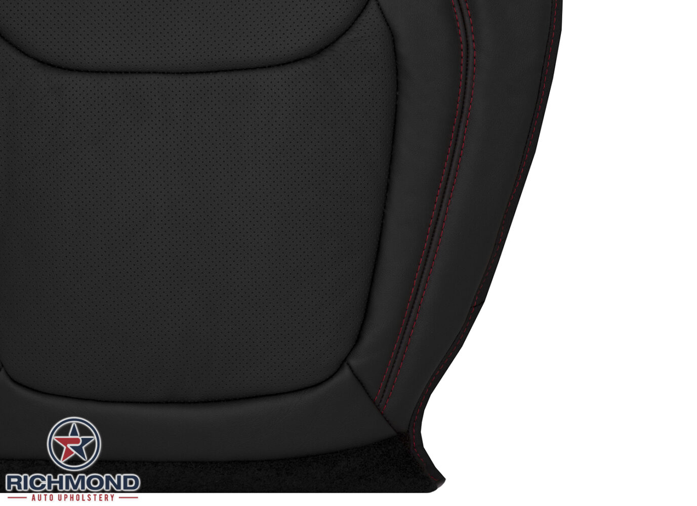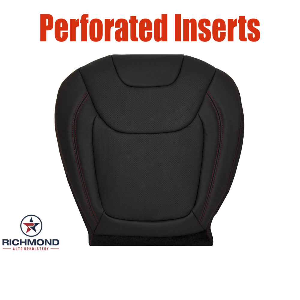 2019-2023 Jeep Cherokee Trailhawk Replacement Leather Seat Cover: Driver Side Bottom, Black Perforated w/Red Stitching