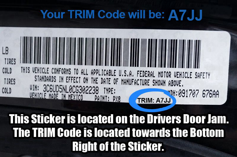 | TRM (Interior Trim) Code | A7JJ (This Code is on your Vin Number Sticker) |