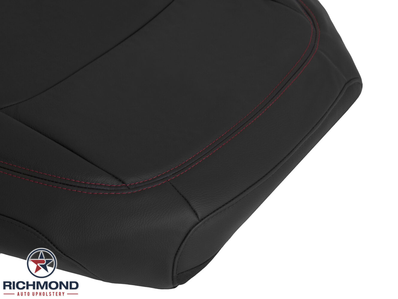2019-2023 Jeep Wrangler Rubicon Replacement Leather Seat Cover: Driver Side Bottom, Black w/Red Double Stitch