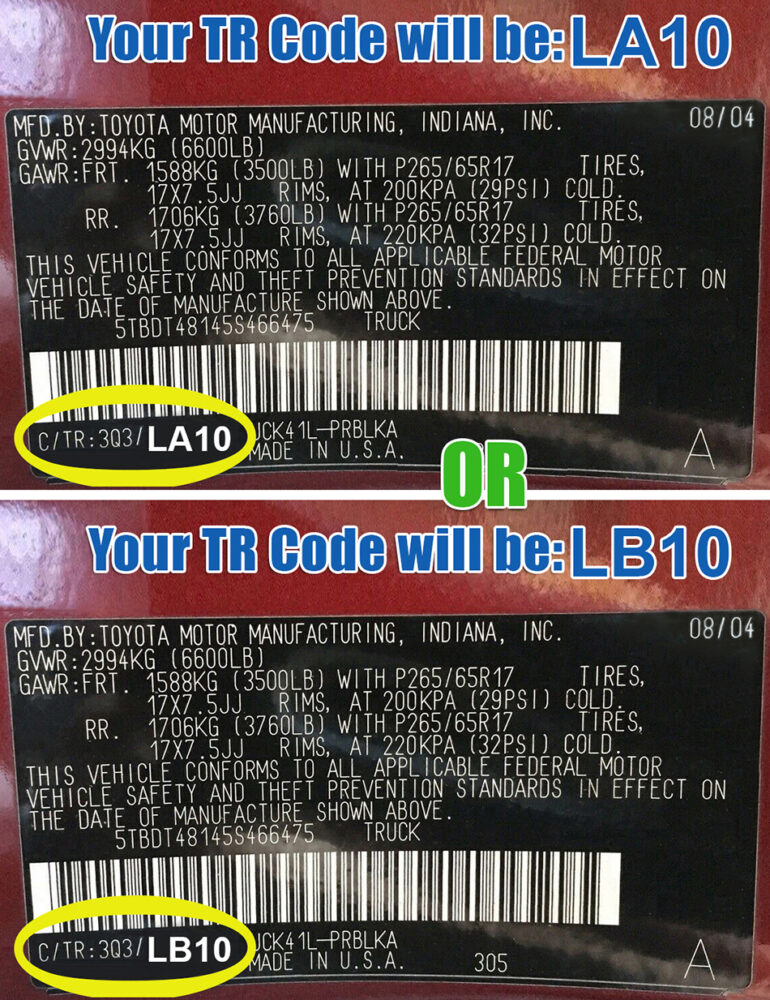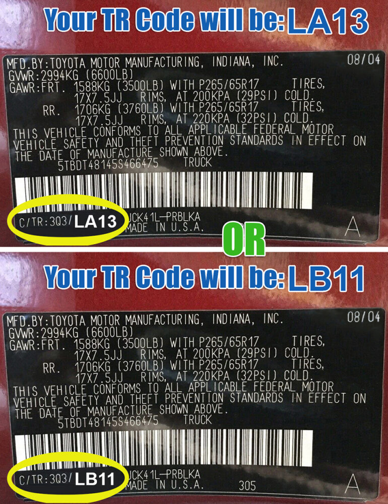 | TR Code (Interior Trim) | LA10, LB10, LC10, LA13 or LB11 (This Code is on your Vin Number Sticker) |