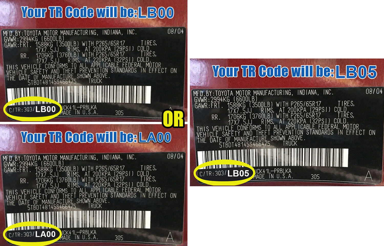 LA00, LB00 or LB05 (This Code is on your Vin Number Sticker)
