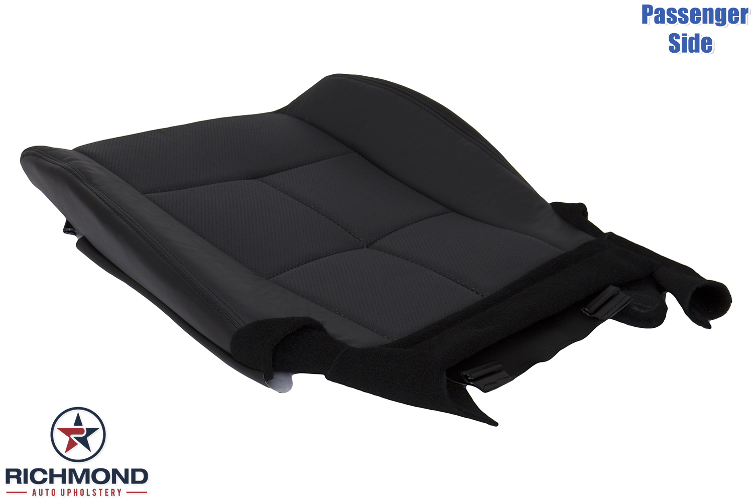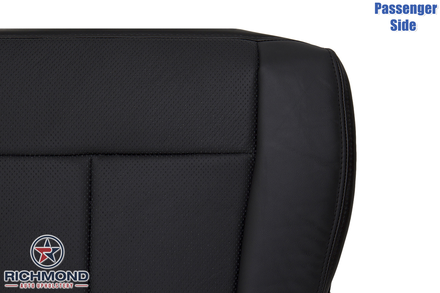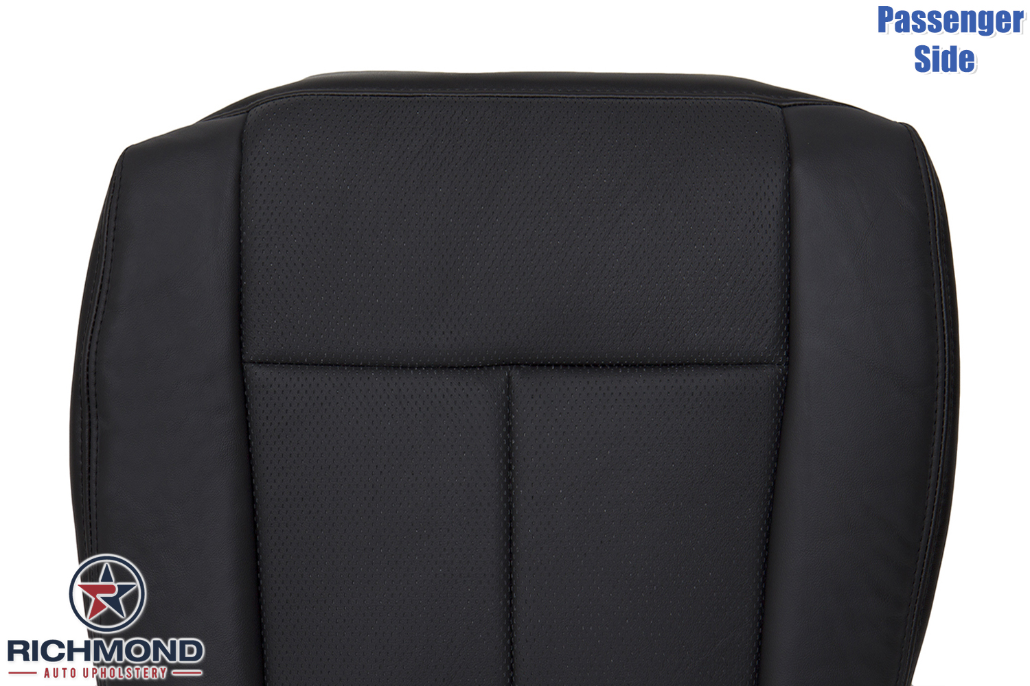 2007-2014 Lincoln Navigator Replacement Leather Seat Cover: Passenger Side Bottom, Black w/Double Stitch Seam & Dash-Perforation