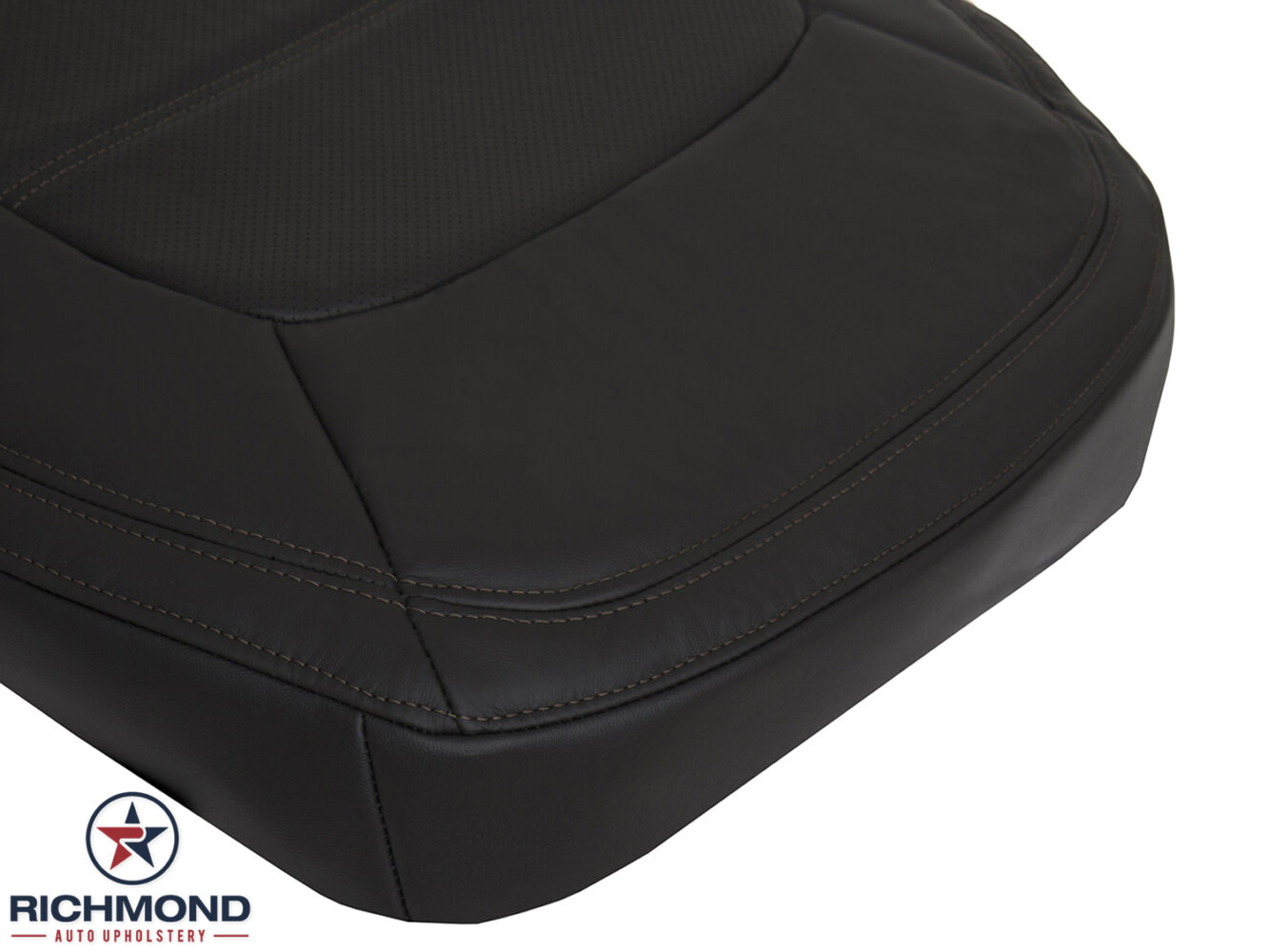 2017-2023 Mazda CX-5 Grand Touring Replacement Perforated Leather Seat Cover: Passenger Side Bottom, Black with Brown Stitching