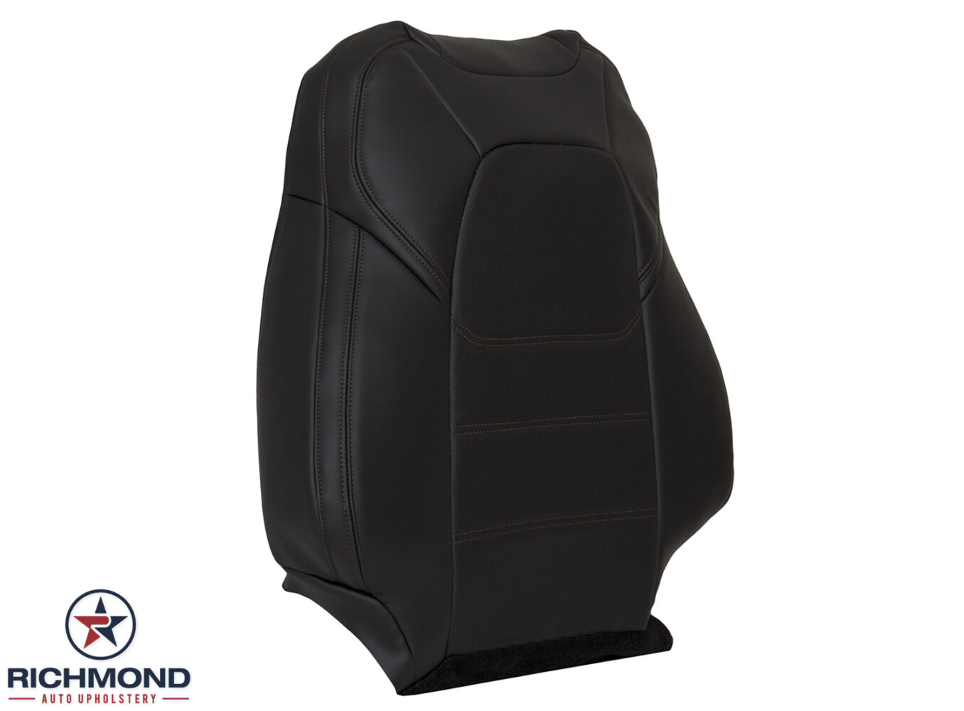 2017-2023 Mazda CX-5 Grand Touring Replacement Perforated Leather Seat Cover: Passenger Side Lean Back, Black with Brown Stitching