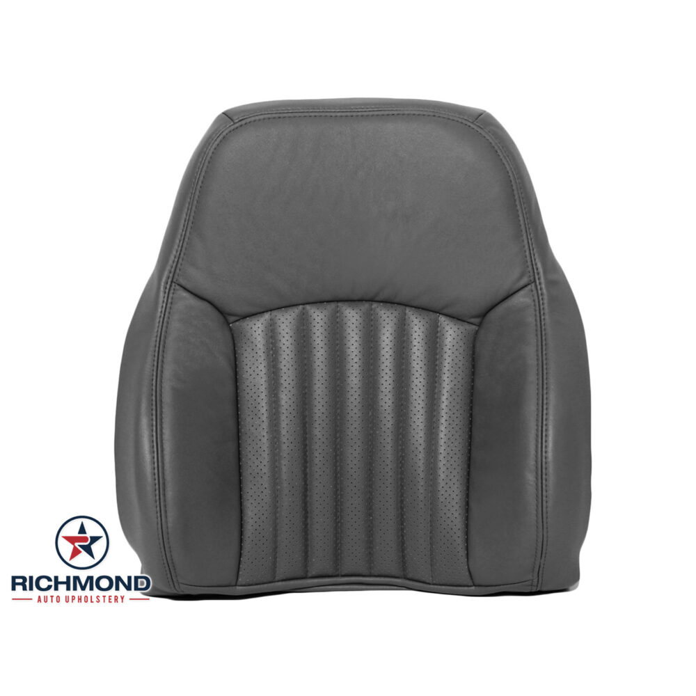 1997-1999 Pontiac Firebird Trans Am Replacement Perforated Leather Seat Cover: Driver Side Lean Back, Dark Gray (For Power Lumbar Seats)