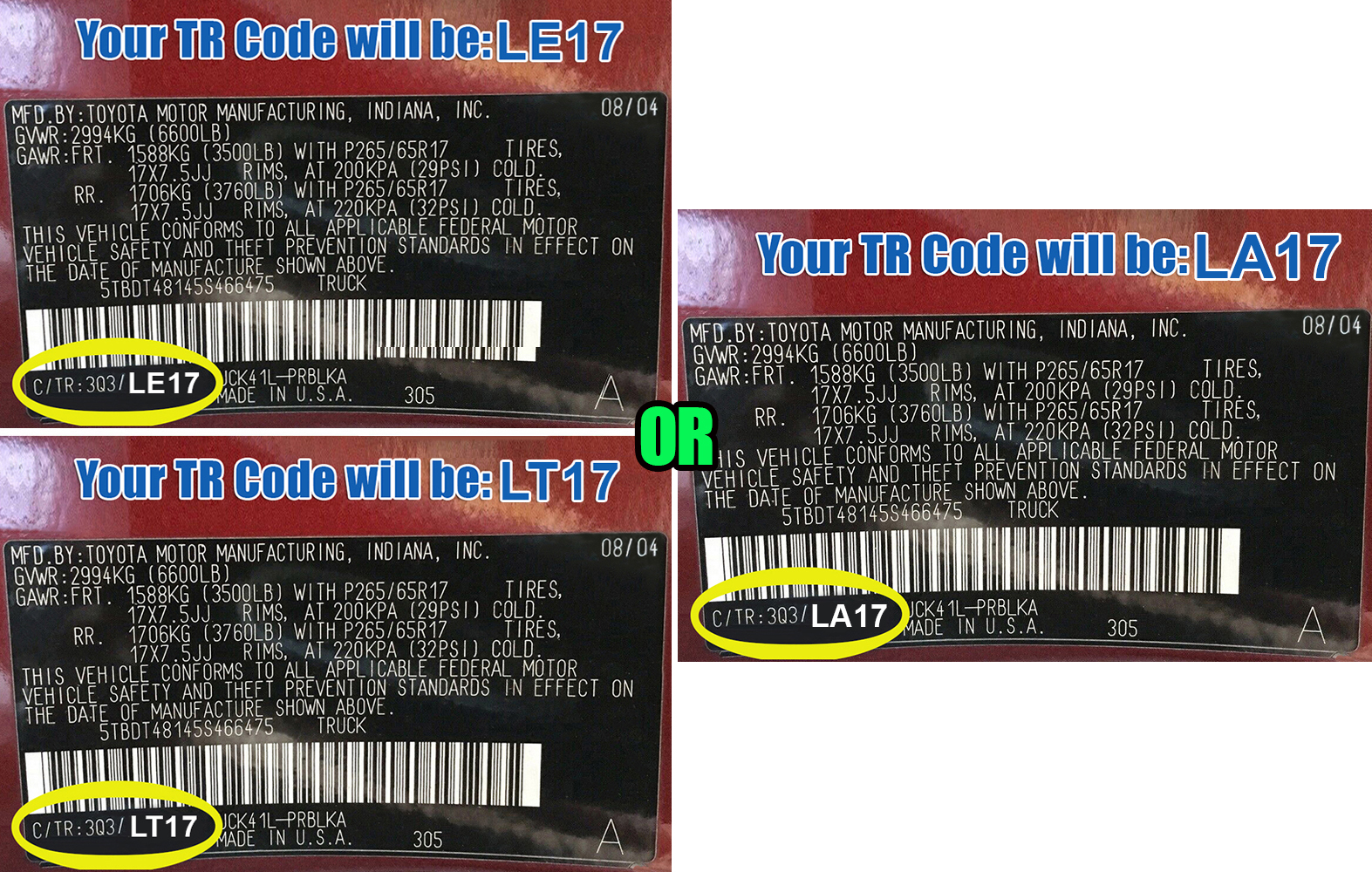 LD17, LE17, LT17, LF17 or LA17 (This Code is on your Vin Number Sticker)