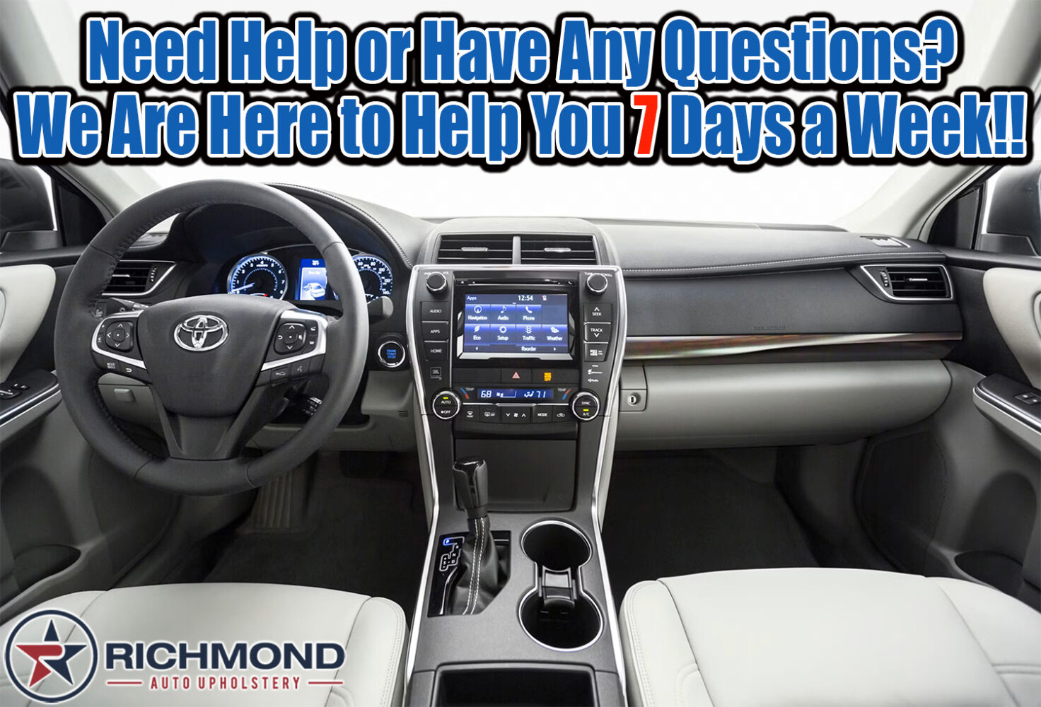 By cutting out the middle man we save you money! We manufacture all of our replacement leather covers and ship the product directly from our office in Houston, TX, leaving you with a OEM quality cover that is made in the USA without paying high dealership prices! Our replacement covers are manufactured to exceed OEM specs but maintaining an OEM look, we only use genuine factory original leather and materials. The factory cover that is in your Toyota Camry now came with vinyl bolsters that tend to crack and peel over time. We have engineered a replacement cover for durability. Unlike traditional vinyl and synthetic materials, we use Genuine Leather on the Bolsters to ensure a long-lasting quality cover. All of our materials come in the original factory color, there is NO Painting or Dyeing involved so your cover will never peel or fade! Quality is mandatory which is why each cover is individually handmade and tested for fitment before it is packed and shipped, if you are not satisfied with your cover you have a 100% money back guarantee!! We have been supplying franchise dealerships with our Handmade Replacement Covers for over 42 years and we are now offering them to the public!