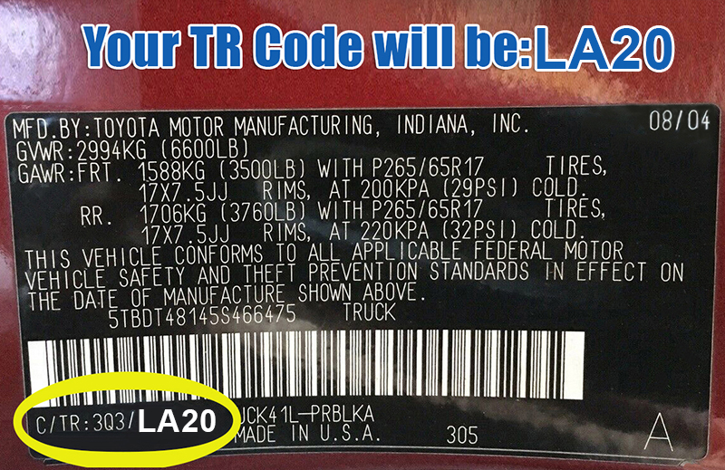 | TR Code (Interior Trim) | LA20 (This Code is on your Vin Number Sticker) |
